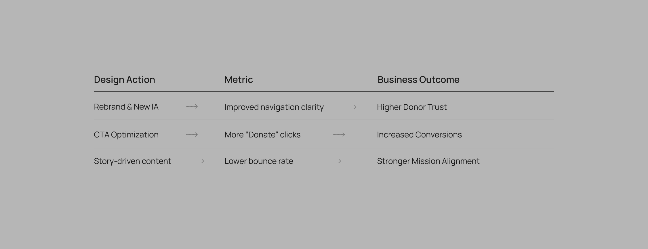 Simplified navigation & CTAs → Easier paths to action → Improved donation and subscription conversion.